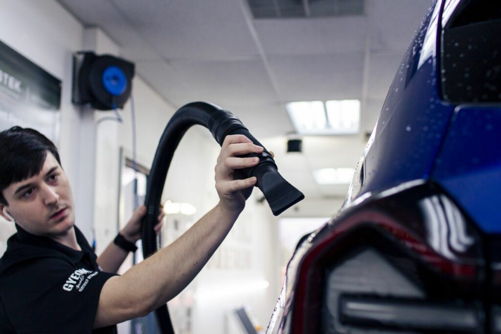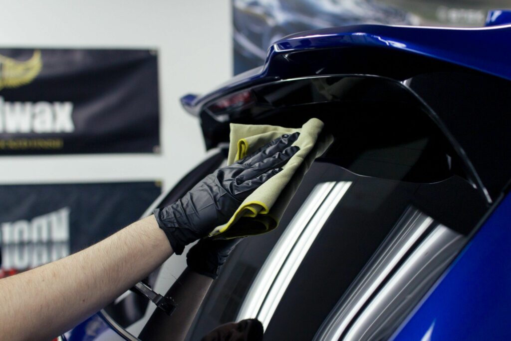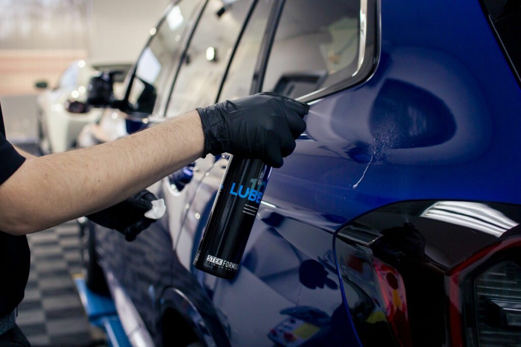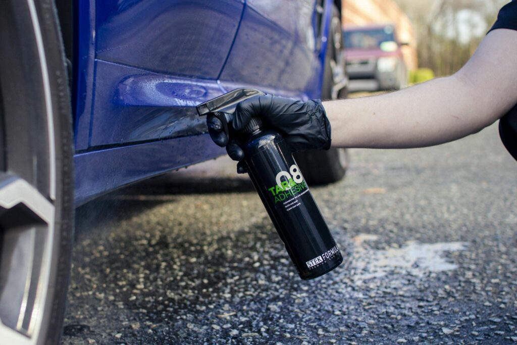 As this vehicle was brand new, we went one step further and used STEK 08 Tar & Adhesive in select spots around the car to remove the adhesive left behind from the factory protective wrap that comes on new vehicles during transportation. STEK’s 08 Tar & Adhesive Remover has a light citrus smell and an impressively strong effect to quickly brake down the remaining adhesive making it one of our teams favorites of the lineup!