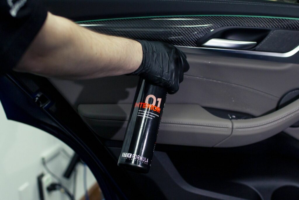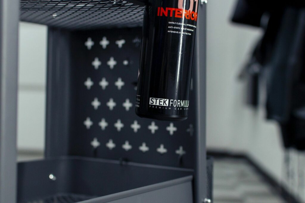 After all this attention on the exterior, it was time for us to take a look at the high-end interior. In order to remove light debris and refresh the interior we used STEK 01 Interior cleaner to wipe down the dash, center console, door panels, and door sills. STEK Interior was designed to easily clean virtually every surface on a vehicle’s interior, leaving behind a protected and smooth OEM Finish.