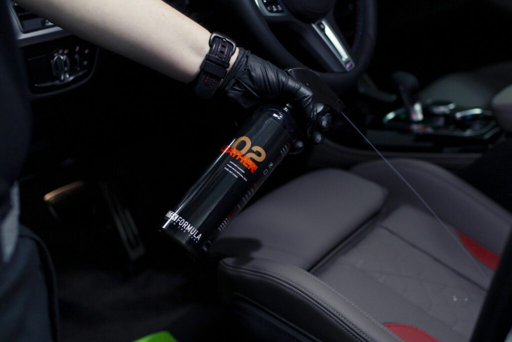 We then used STEK 02 Leather to remove any remaining contaminants on the factory M Sport-seats before applying STEK 03 Lotion on the leather to hydrate, nourish, and ensure maximum protection against cracking and fading down the road.