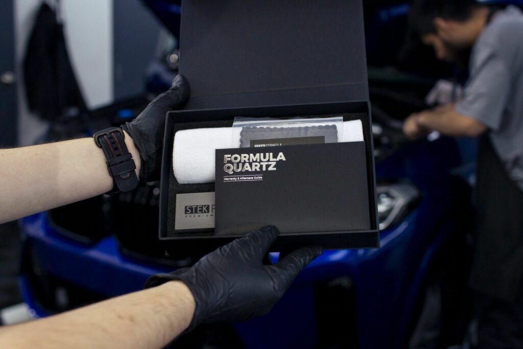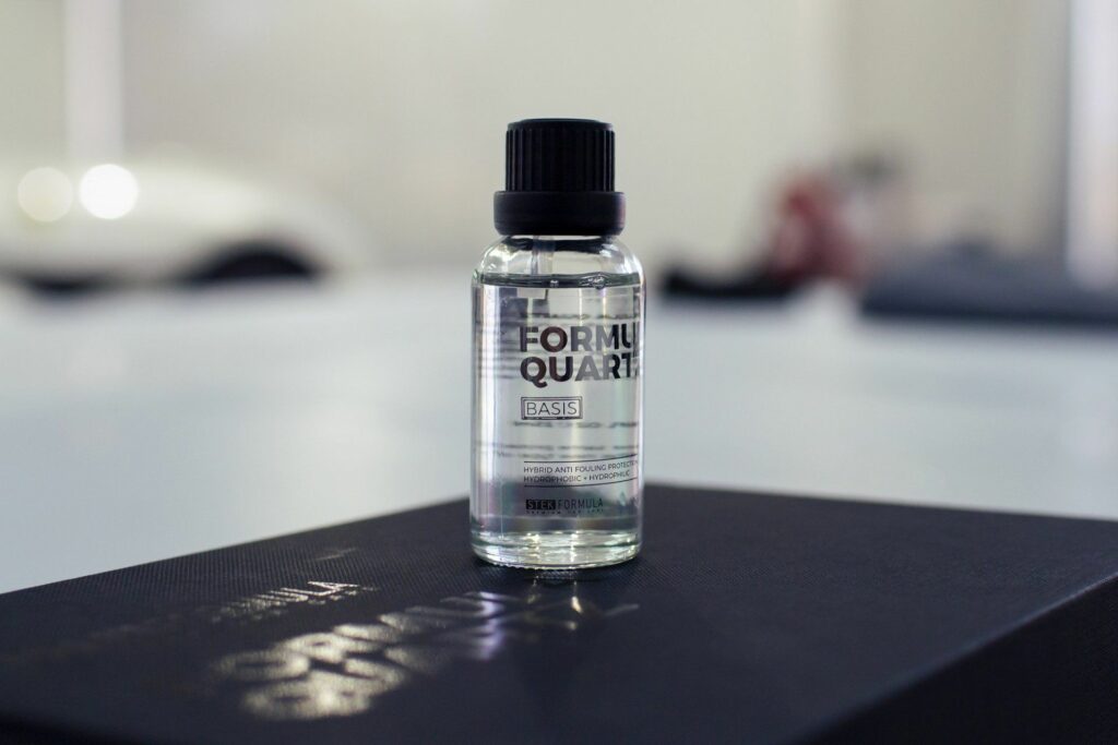 Formula Quartz is applied in small sections at a time, using a criss-cross application method to ensure proper depth and coverage. We then allow the coating to sit, commonly known as ‘flash’ for 2-3 minutes, during which time the coating begins to produce small beads on the vehicle’s surface.
