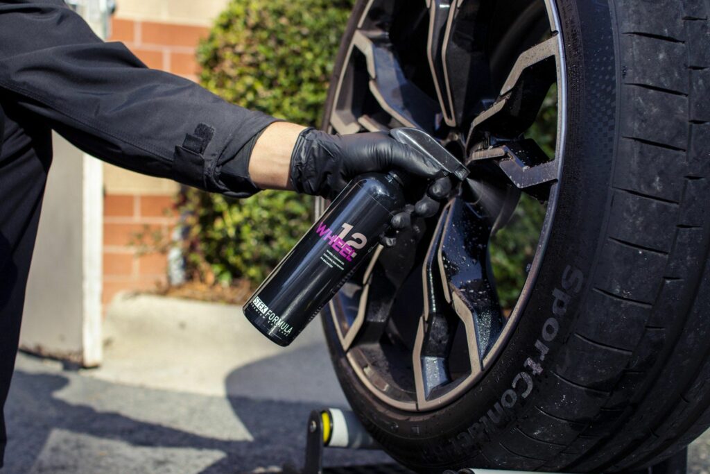 After the first wheel wash was completed, we brought out STEK 12 Wheel to lead the final charge, lifting any stubborn contaminants away from the surface, while the incorporated iron remover neutralized contaminant buildup deep within the wheel and wheel well. Once the wheels and calipers were chemically and mechanically decontaminated, we ceramic coated them for long lasting protection.