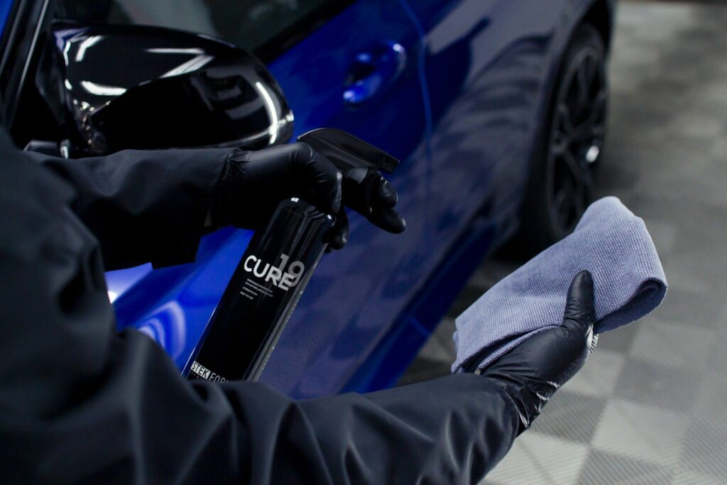 To top off the incredible protection provided by STEK Formula Quartz, we gave the vehicle a quick wipe down with STEK 16 Finish, the product range’s Si02 quick detailer. Seeing as this product is a concentrate, we used the suggested dilution ratio for dark colored vehicles of 1:4.