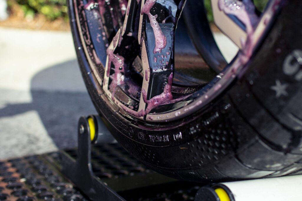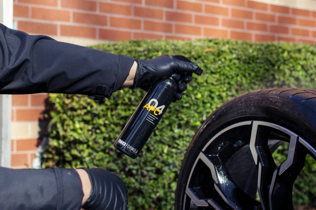 It was then time to prepare the forged wheels and 6 pot calipers for our ceramic coating service, we safely and completely removed the wheels from the vehicle and prepped our dedicated wheel wash bucket. We chose to use STEK Formula 04 APC at a 1:10 dilution for our wheel bucket solution as a versatile all-purpose cleaner that acts fast, deeply penetrates and breaks down oil, dirt, and stains (this works great on paint and glass surfaces too).