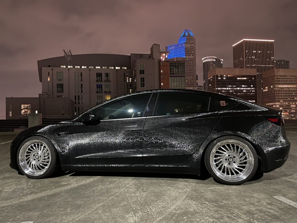 This Tesla Model 3 was fully protected in our Damascus Steel PPF by the team at Automotive Film Specialist in Houston, TX. What’s not to love about having a completely unique-looking wrap at the same time as protecting your car from rock chips, scratches, and stains?